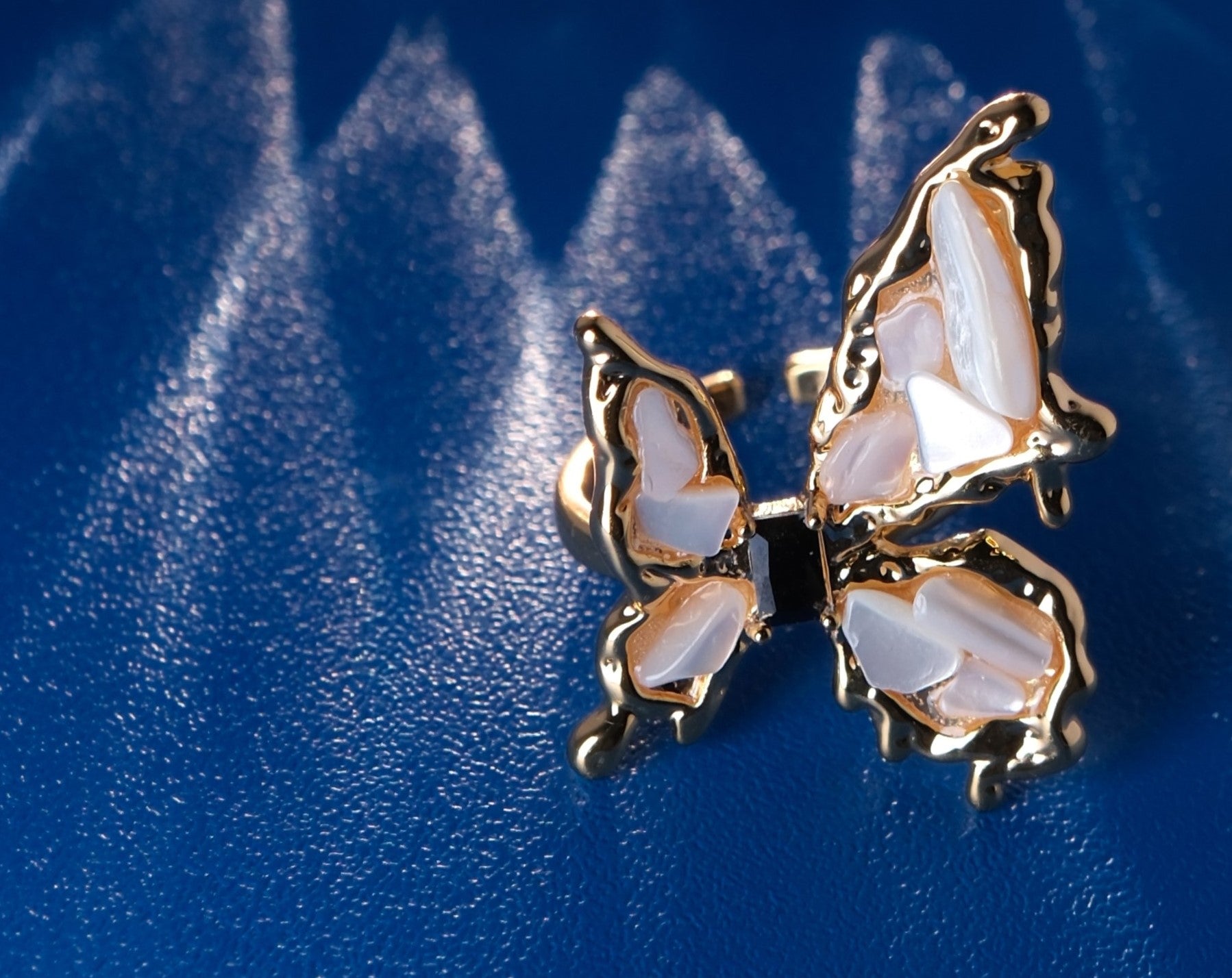 Gold plated ring. Iridescent Shell made Butterfly shape.